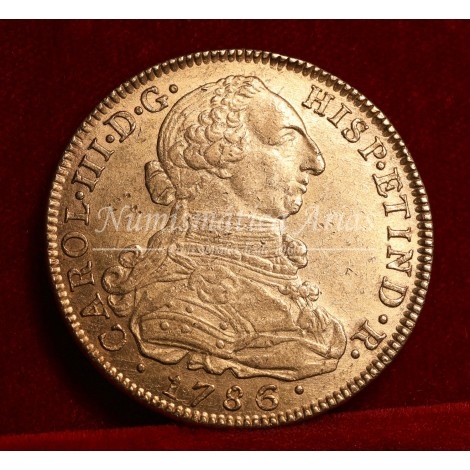 Carlos III. 8 escudos. 1786. Nuevo Reino. Ensayador: JJ. EBC+