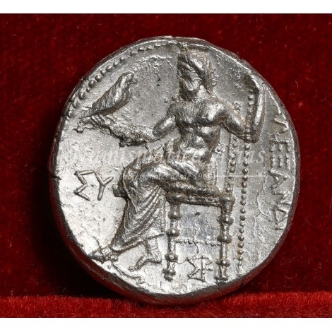R./ Zeus Aëtóforo (portador del águila) sentado hacia la izquierda; ΣY en el campo izquierdo, monograma debajo del trono.